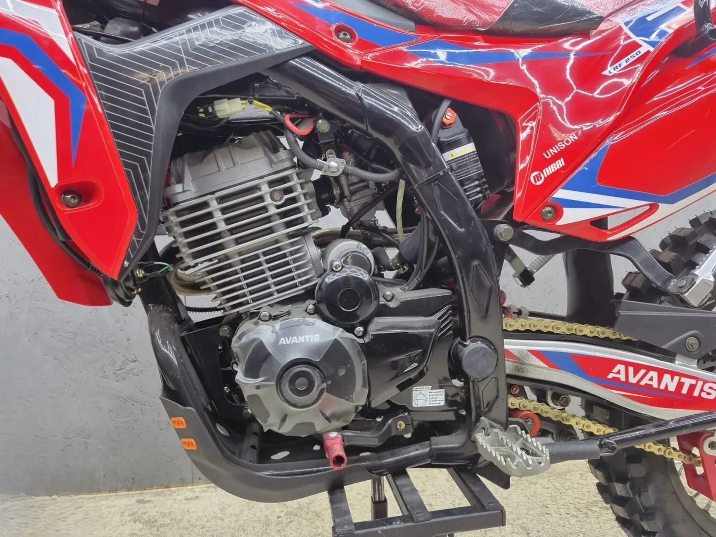 Avantis CRF 250 LUX укомплектован карбюратором NIBBI PE28, который гарантирует стабильное топливопитание и легкий запуск двигателя в любых погодных условиях. Данная модель карбюратора неприхотлива к качеству топлива и способствует плавной, прогнозируемой отдаче мощности, что критично для безопасного управления на оффроуд-маршрутах.