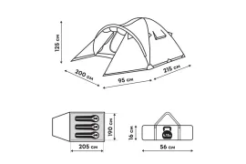 В комплекте предусмотрены 6 штормовых оттяжек со светоотражающей нитью и колышки для надежной фиксации при непогоде. Тамбур оснащен дополнительной дугой для увеличения объема и съемным полом. В тамбуре есть большие окна для притока воздуха и обзора.